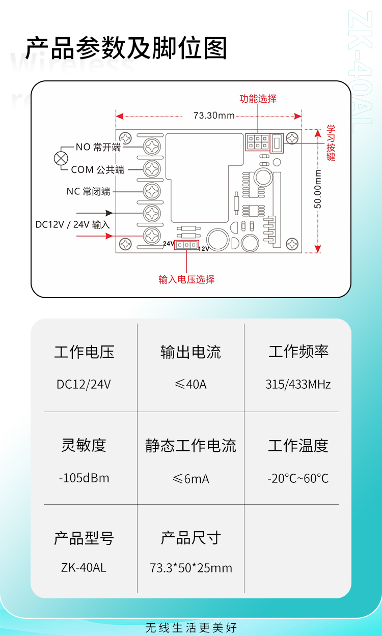 ZK-40AL是一款单路香妃直播软件下载控制器,最大输出电流40A,12/24V电压可选