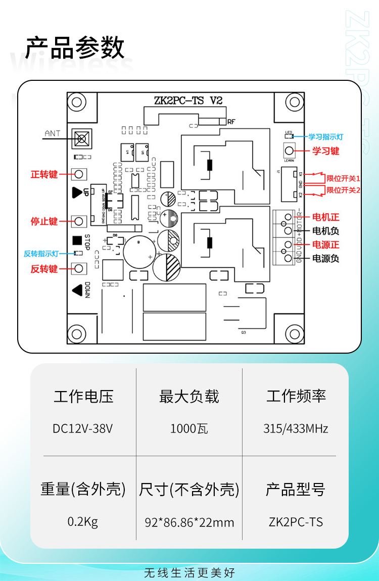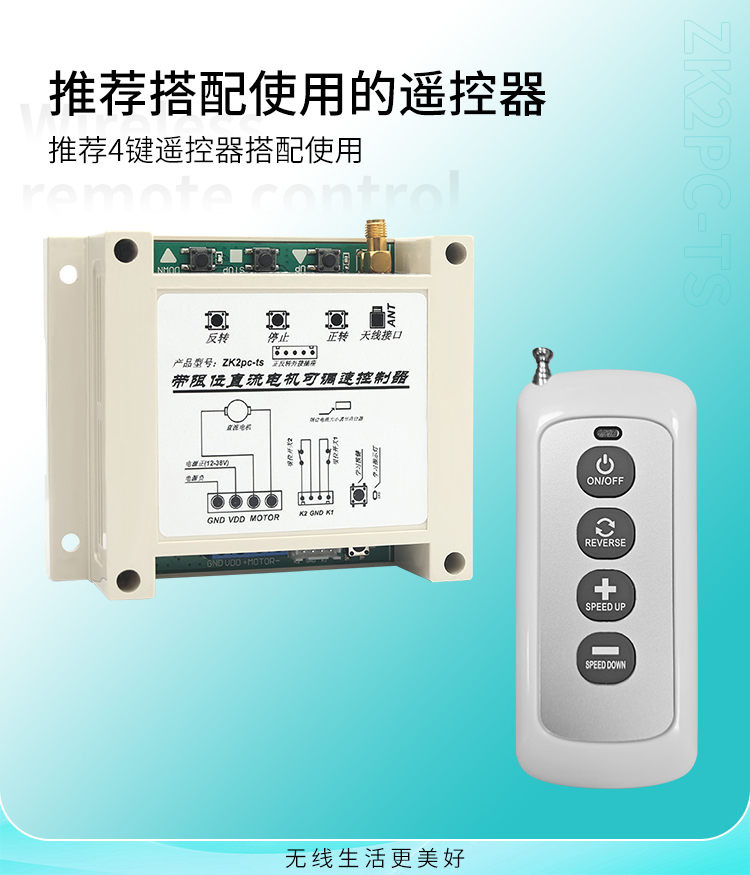5.电机速度可以通过遥控器调节设置速度的快满,能满足各种转速要求;