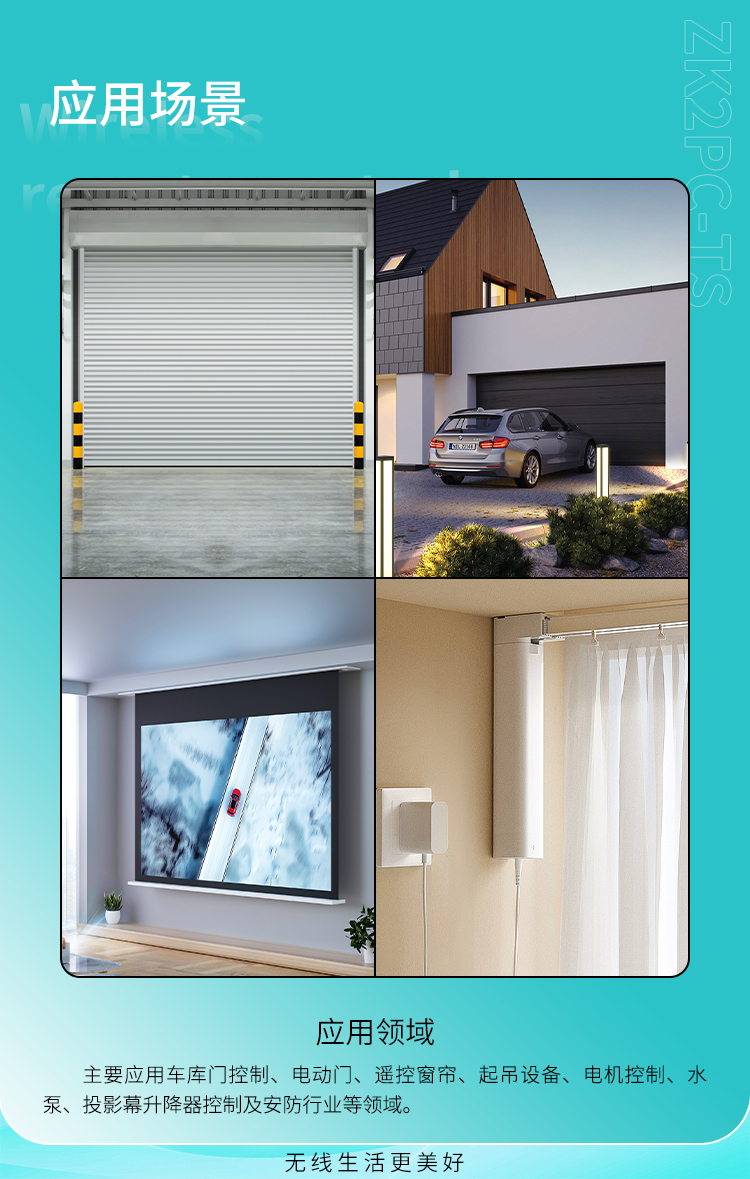 主要香妃视频APP下载安装于灯光控制、车库门控制、电动门、遥控窗帘、起吊设备、电机控制、水泵、投影幕升降器控制及安防行业等领域。