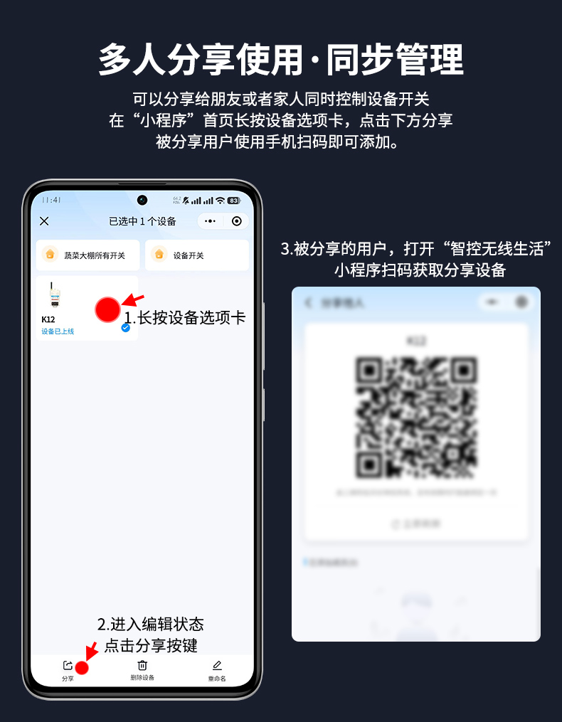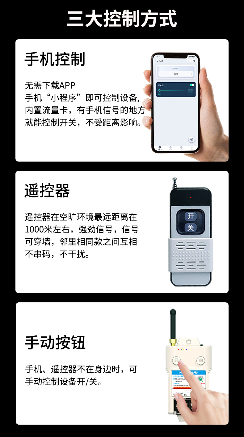 K12是一款单路智能遥控开关,手机微信小程序即可远程控制开关,不限距离,四种定时模式,精准把控工作时间