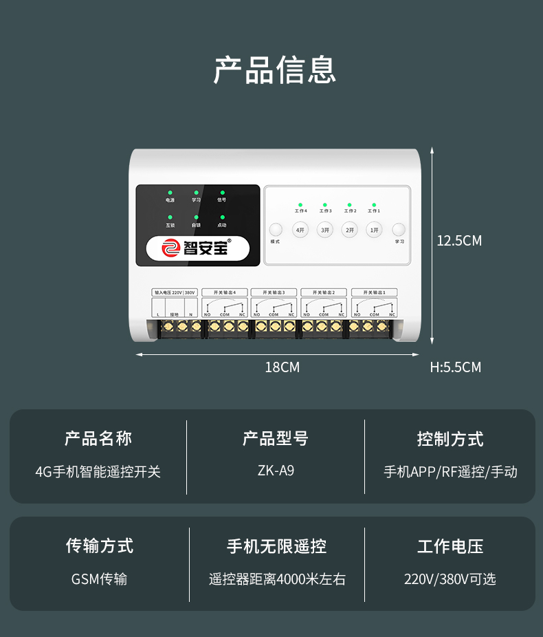 ZK-A9是一款四路物联网智能开关,手机APP就可远程遥控开关,有定时功能,准确开关设备。
