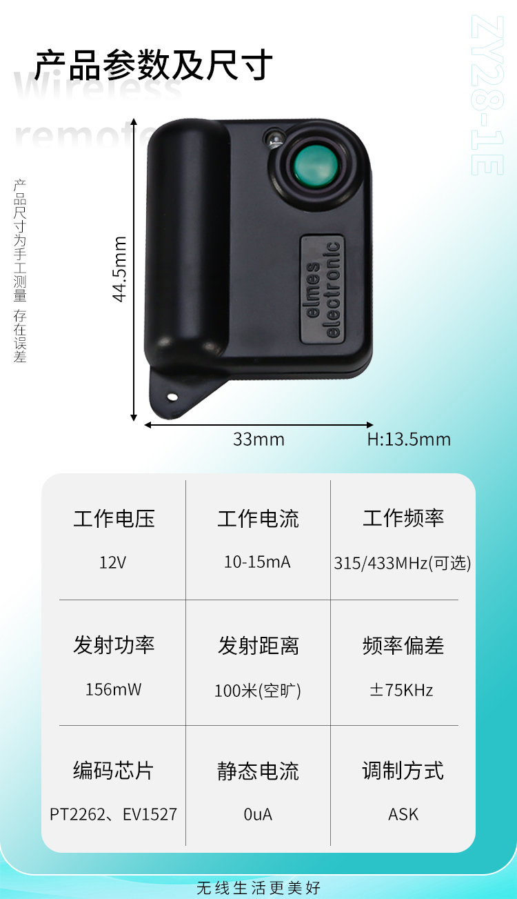 ZY28-1E是一款单键小功率遥控器,小巧外壳