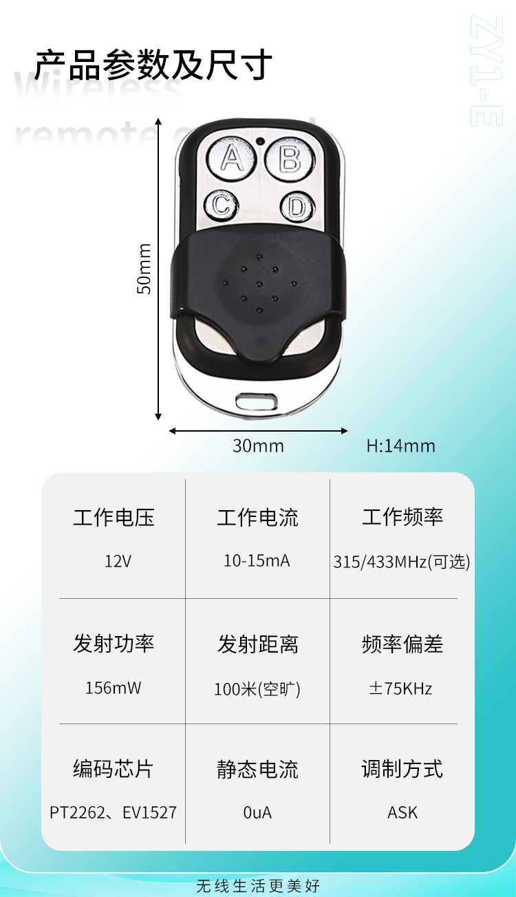 ZY1-E是一款小功率香妃直播软件下载遥控器。2键、4键可选,外观小巧精美