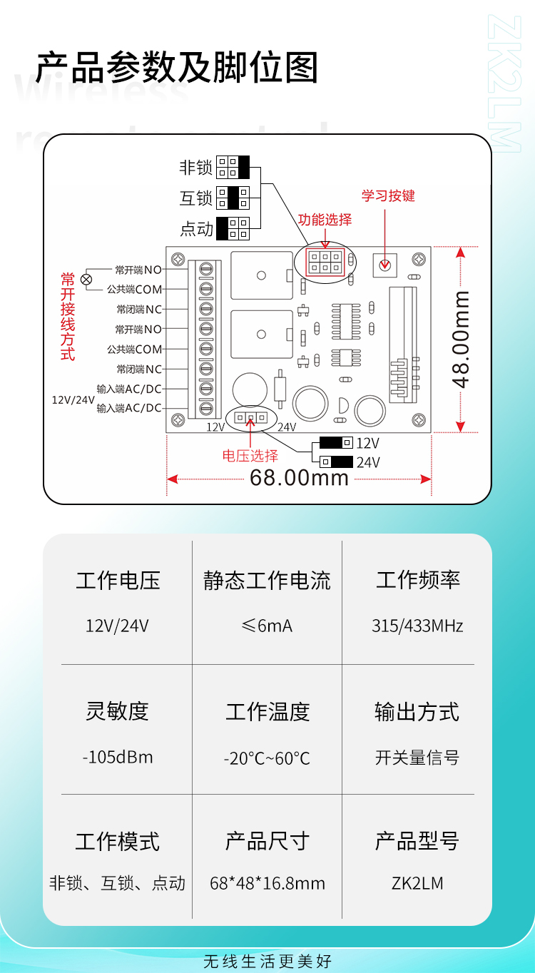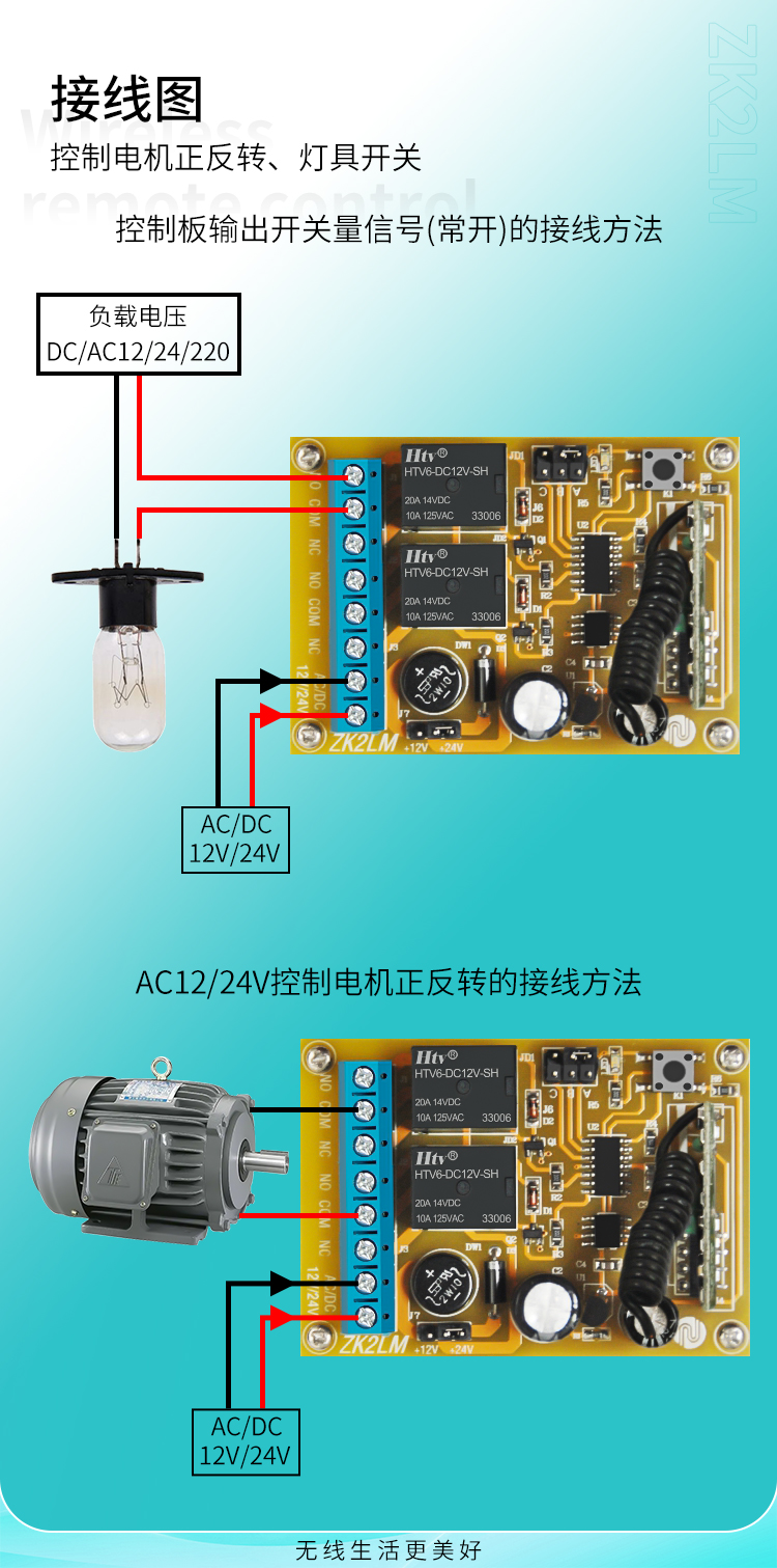 ZK2LM是一款正反转香妃直播软件下载控制器,学习模式方便,12/24可选,DC/AC可选,可独立学习,频率可选,外形美观,操作简单。