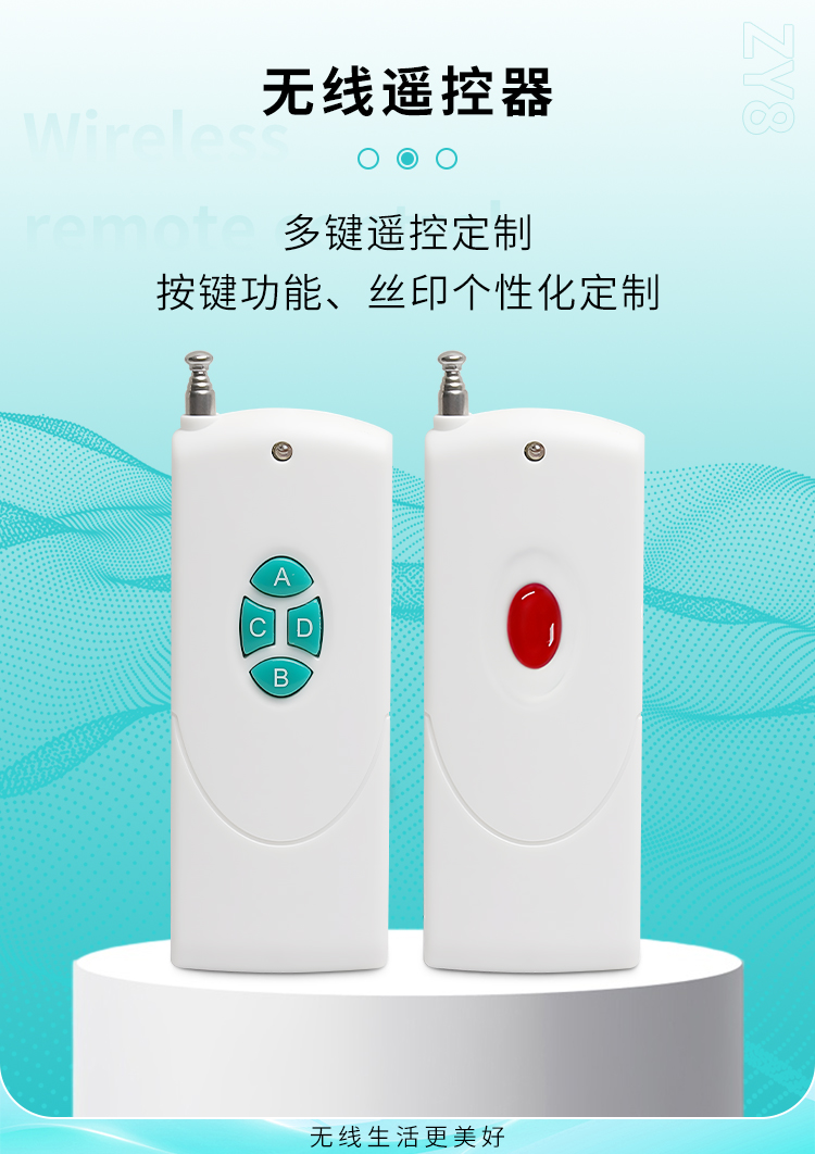 ZY8是一款中功率香妃直播软件下载遥控器,1键4键可选,具有可靠性高、频率稳定、穿透能力强等特点;